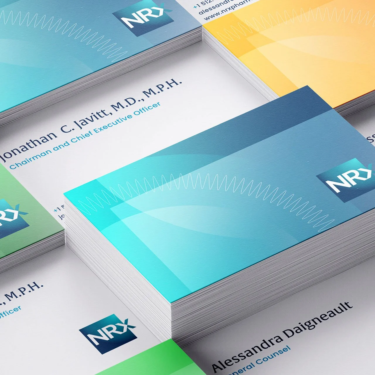 The core visual identity elements work together to create an expression that captures the optimism of NRx as it pursues breakthrough therapies for those at the most critical stages of disease.